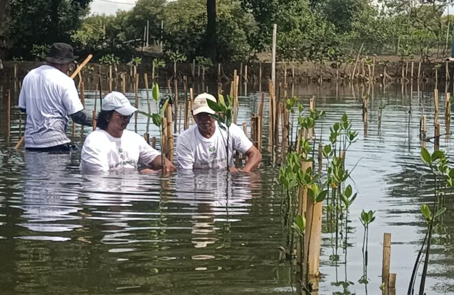 Upaya mitigasi bencana pesisir Tangerang Utara dari banjir rob, erosi dan abrasi, ratusan aktivis Lingkungan yang tergabung dalam Koalisi Aktivis Lingkungan Hidup Tangerang (Kalung) menggelar aksi penanaman ribuan mangrove dengan Tema ‘Ruwat Kampung, Rawat Bumi’, di Desa Tanjung Pasir Kecamatan Teluk Naga, Rabu (15/01/2025).